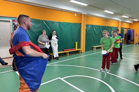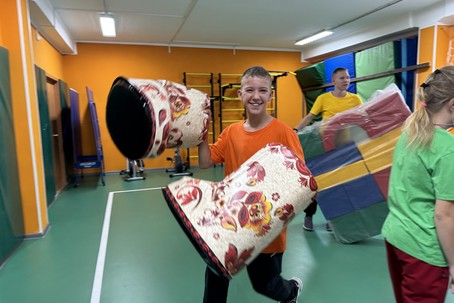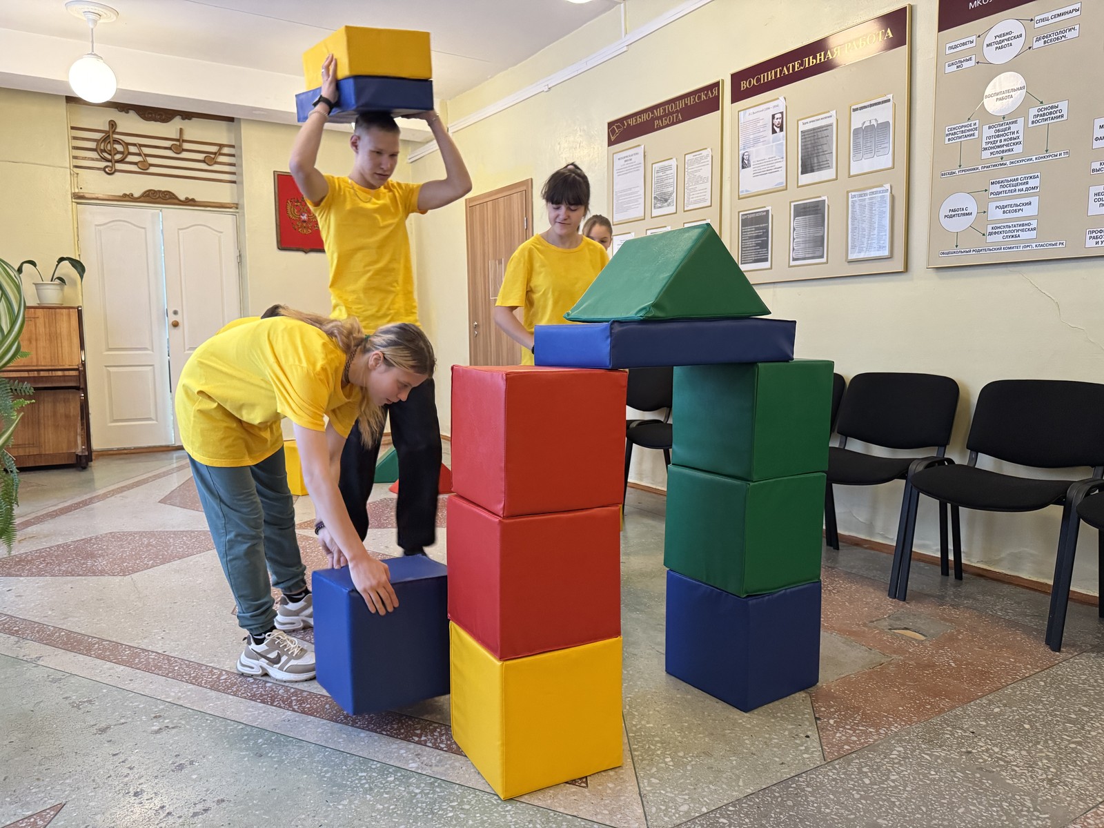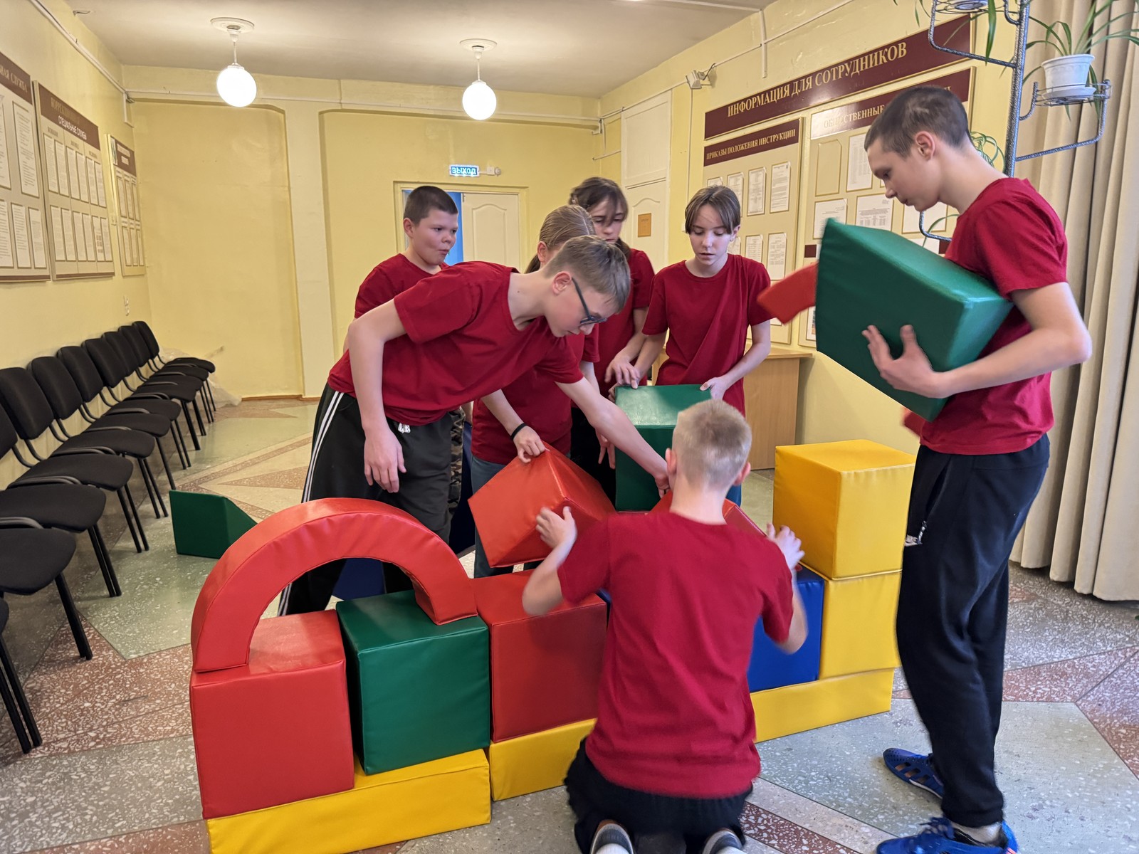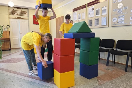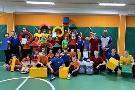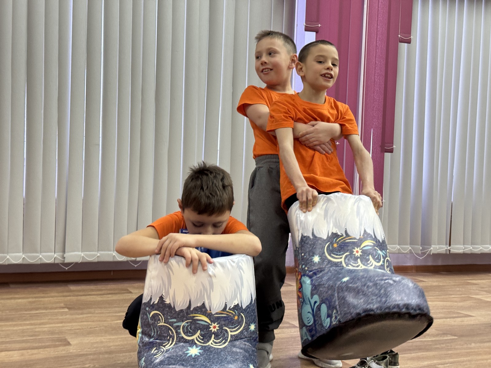 Чтобы сразу познакомить ребят с возможностями игровых модулей, сотрудники компании организовали спортивно-развлекательную программу. Сначала зарядка и комплекс оздоровительных упражнений, затем дети вместе с гостями-наставниками отправились проходить квест. На каждой станции им предстояло выполнять задания с использованием нового инвентаря. Ребята строили замок из модулей, играли в городки, проходили полосу препятствий, бегали в огромных мягких валенках и др. Игры развивали координацию, ловкость и навыки командной работы, а сами ребята получали массу положительных эмоций от процесса.